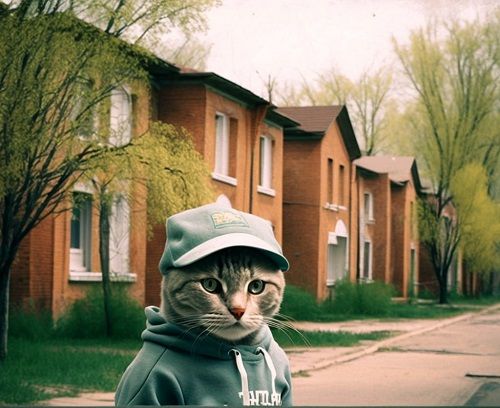 Кіт 12 кварталу - це серйозний кіт у спортивному худі.