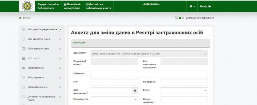 Якщо необхідно змінити дані, користувач зі своєї особистої сторінки може заповнити необхідну анкету – для зміни або уточнення даних у Реєстрі застрахованих осіб.