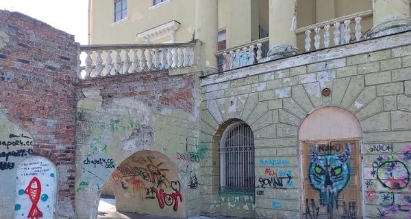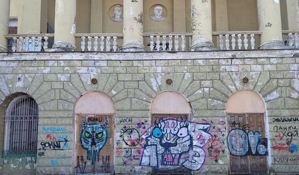 Місцеві вандали вибрали стіни будівлі як «полотно» і малюють на них все, що завгодно. Під парадним балконом і на самому балконі часто можна знайти пляшки, недопалки, уламки скла та інше сміття.