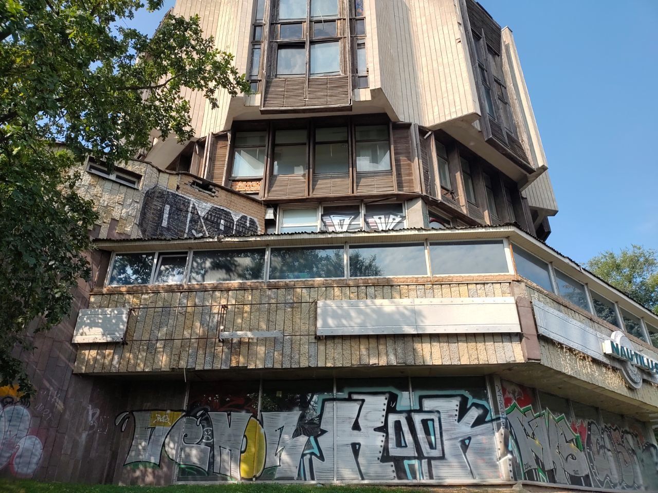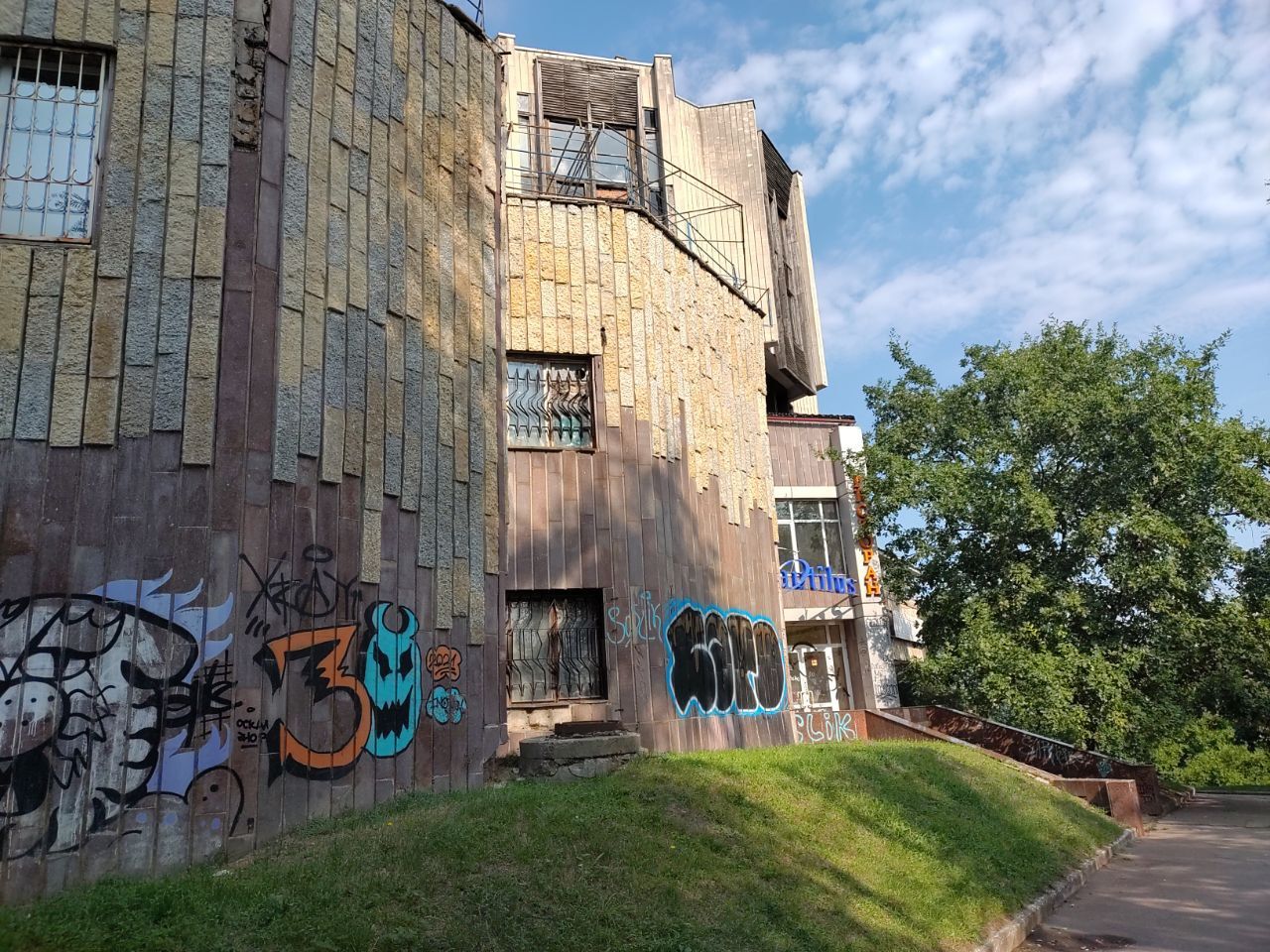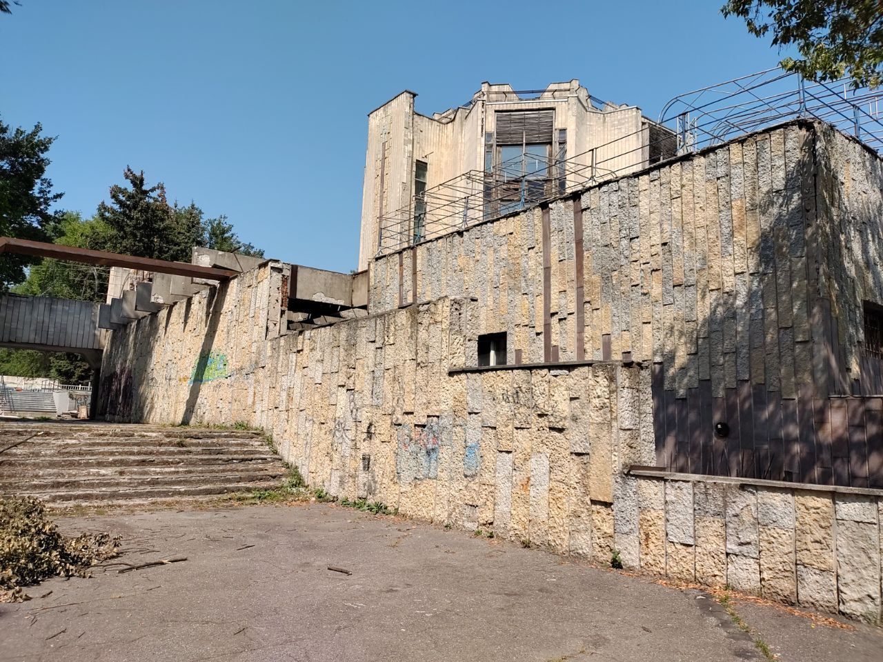 Колишній популярний ресторан перебуває в аварійному стані. Будівля розмальована графіті, де-не-де на фасаді можна побачити залишки гранітних плит, що його раніше прикрашали.