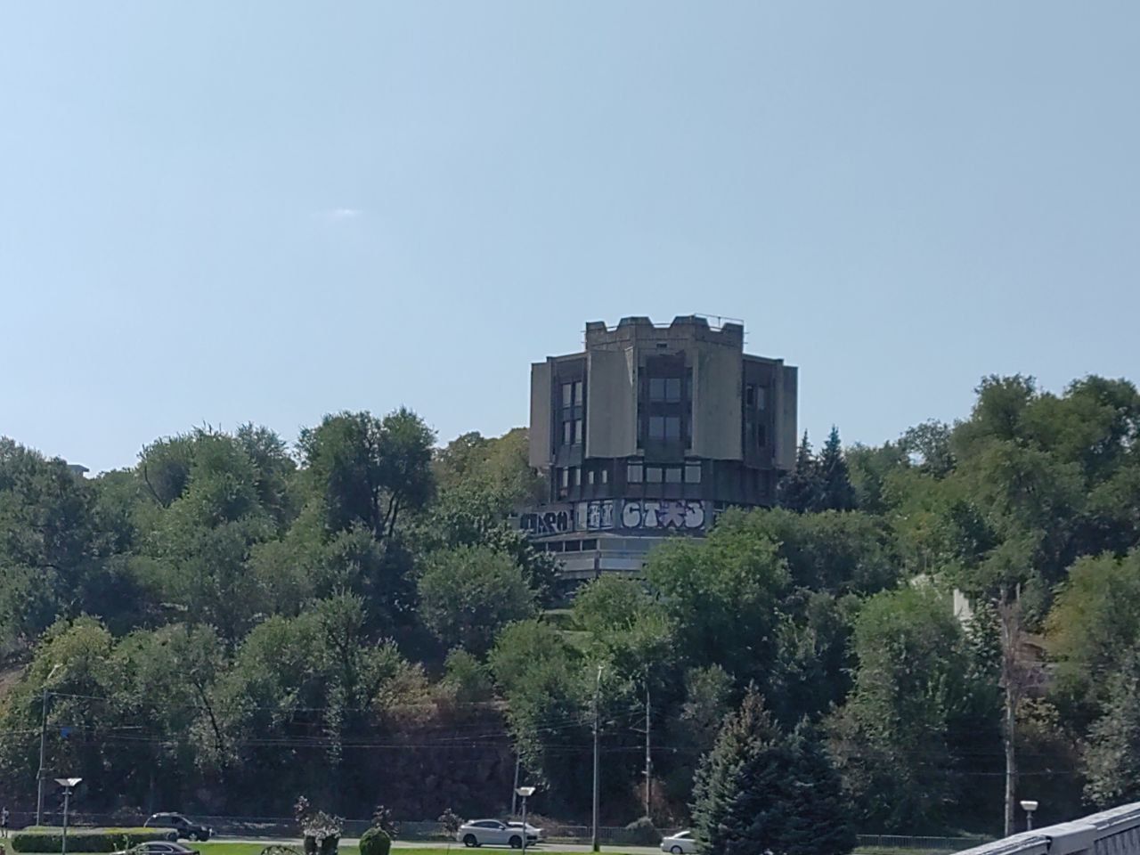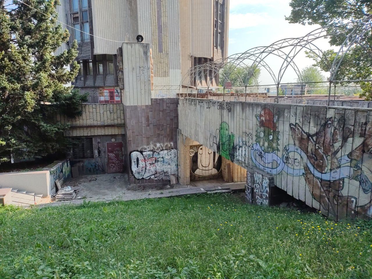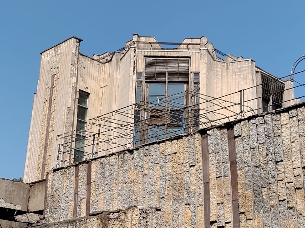 Колишній популярний ресторан перебуває в аварійному стані. Будівля розмальована графіті, де-не-де на фасаді можна побачити залишки гранітних плит, що його раніше прикрашали.