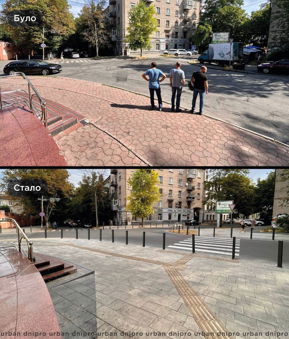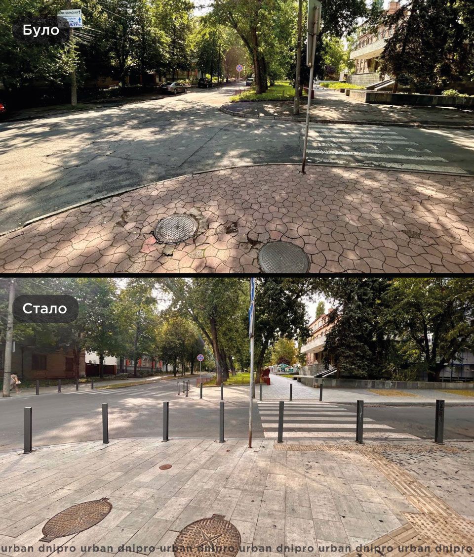 • Замість окремих лунок — суцільні смуги озеленення;• Влаштували підняте перехрестя;• Всі проїзди вимостили плиткою;• Замість сходів — погогі спуски;• Впорядкували паркування, - йдеться у дописі.