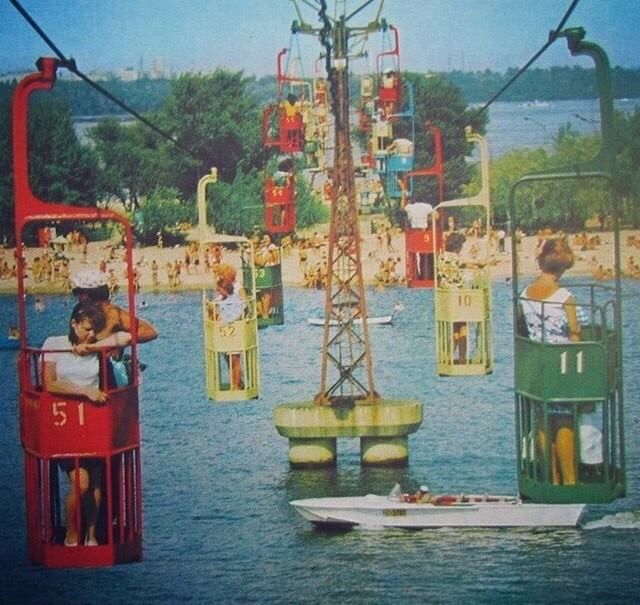 Канатна дорога на Монастирський острів у Дніпрі працювала до початку 2000-х років. Це був один із найпопулярніших способів потрапити на острів. Іноді, правда, кабінки зупинялися і застрявали над річкою чи дорогою, і тоді поїздка перетворювалася на справжній атракціон.