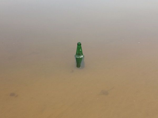 Незважаючи на те, що пляж покинутий – сміття у воді таки є.