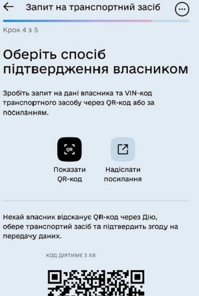 Аби закінчити процедуру «передачі» технічного паспорту на авто потрібно надіслати майбутньому належному користувачеві-водію запит або QR-код. Він має його підтвердити та у відповідь надіслати свої дані та підписати заяву за допомогою «Дія. Підпис».