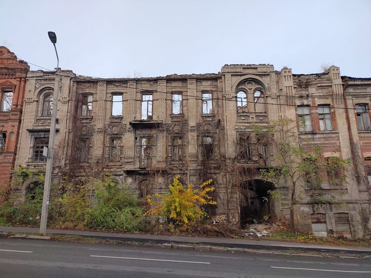 На вулиці Січових Стрільців у Дніпрі є цілий квартал зруйнованих старовинних будинків. Всі вони були побудовані приблизно одночасно - на початку минулого століття. І всі вони зараз зруйновані настільки, що від будівель залишилася лише частина коробки фасаду.