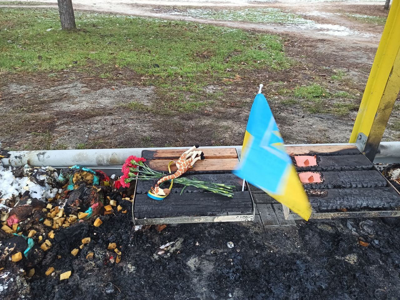 Сьогодні вночі невідомі спалили меморіал загиблим від ракетної атаки на Перемозі.