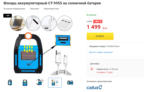 Також у магазинах можна знайти і ліхтарик із сонячними батареями. У таких пристроїв є порт, і за допомогою них також можна заряджати телефони. Тож ліхтарик допоможе бути не лише зі світлом, а й зі зв'язком. Ціна на такий пристрій може стартувати від 1,5 тис. грн.