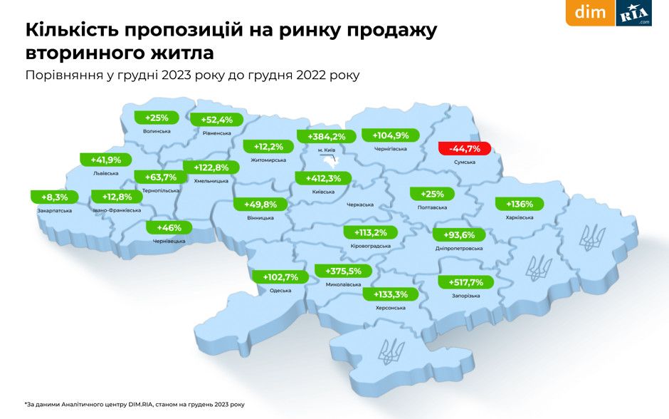 Аналітики відомого порталу з пошуку житла опублікували статистику того, які змінилися ціни на житло у 2023 році.