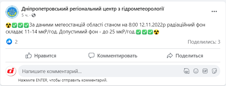 Який радіаційний фон у Дніпрі та області 12 листопада