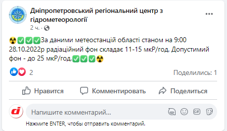 Який радіаційний фон у Дніпрі та області 28 жовтня