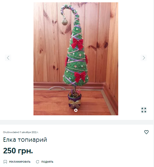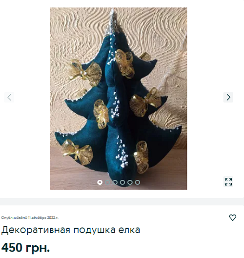 У продажу можна знайти не лише святкову, а й практичну ялинку-подушку. Усередині холофайбер, висота виробу майже 40 см, подушка розшита бантами, що символізують прикраси. Коштує таке новорічне дерево 450 грн.