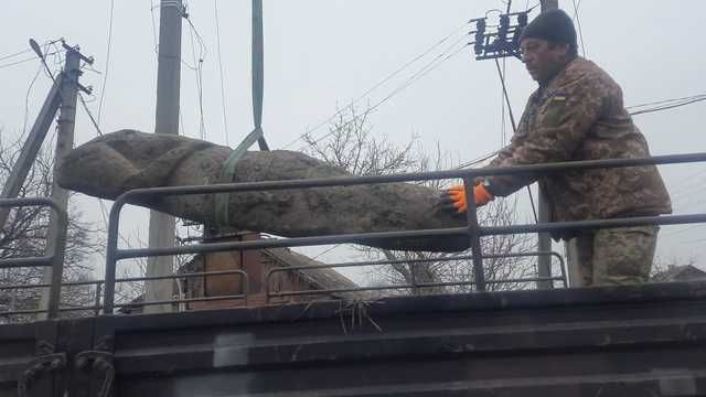 Кам'яну бабу з фронту евакуюють до Дніпра.