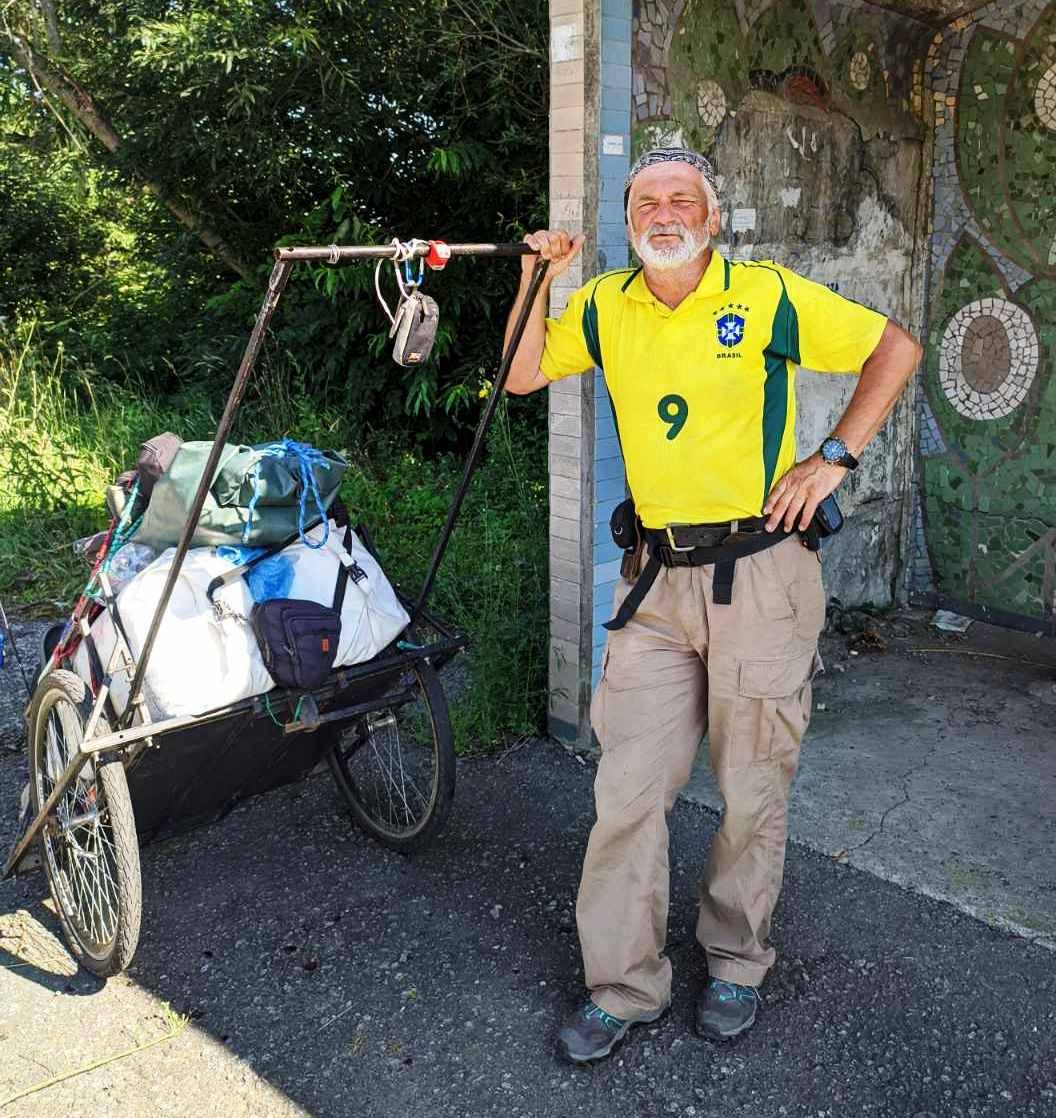 Мандрував Сергій не з рюкзаком, а з возиком, куди складав усе необхідне - воду, спальники, одяг та інші предмети першої необхідності.