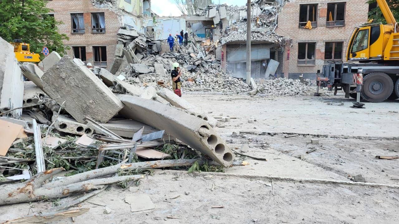 З-під завалів цієї будівлі дістали тіло працівниці — вона стала шостою за сьогодні жертвою російської атаки по місту.