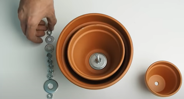 Горщики потрібно вставити один в інший. При цьому через наявні в їх дні отвори вазони з'єднуються болтом, на який нанизано безліч шайб і гайок.