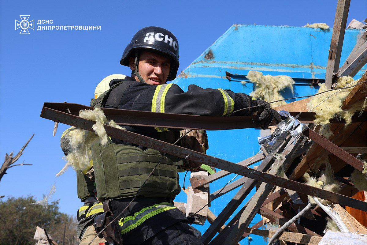 ДСНС оприлюднила перші кадри з місця ракетної атаки на Дніпропетровщині.