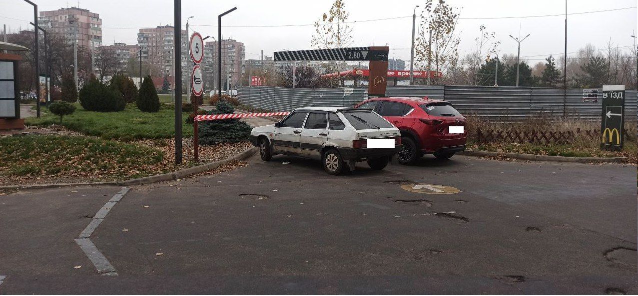 У Дніпрі біля "Макдональдсу", що на Перемозі, місцеві жителі зробили кумедне фото: дві автівки заздалегідь зайняли чергу на МакДрайв.