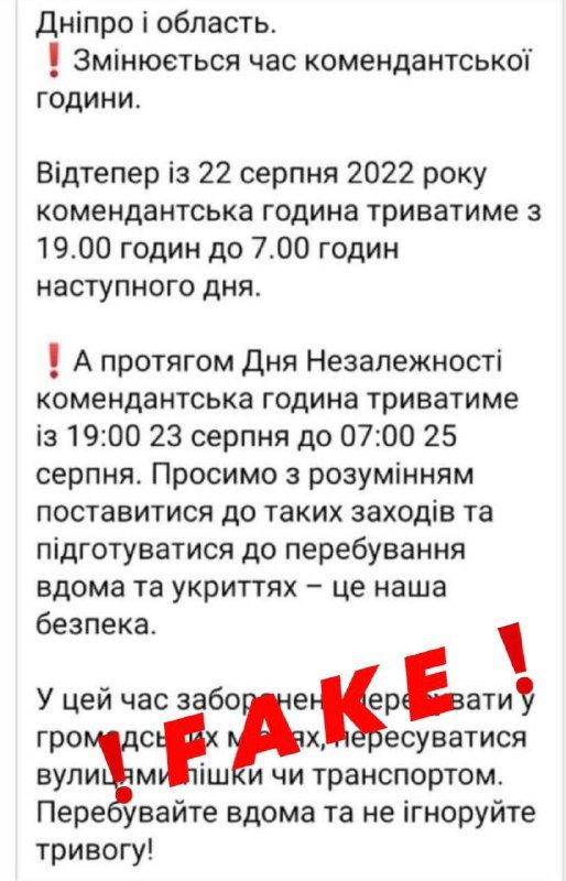Затяжна комендантська година у Дніпрі на День Незалежності: у мережі поширюють фейк