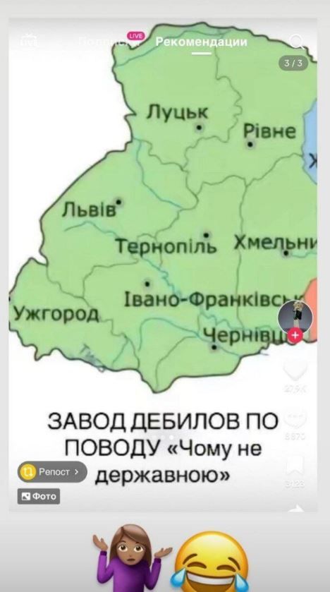 Анна виклала в своєму Instagram провокативне відео з TikTok. Там називали мешканців західних областей України - "Заводом деб*лів під назвою "Чому не державною?". Цей допис обурив фоловерів блогерки, які закликали її не розпалювати ворожнечу та не дискримінувати людей за їхніми поглядами.