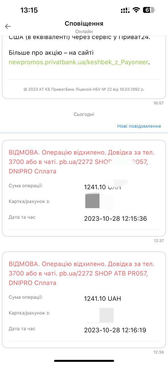 Збій у "ПриватБанку": картки дніпрян не приймають у магазинах