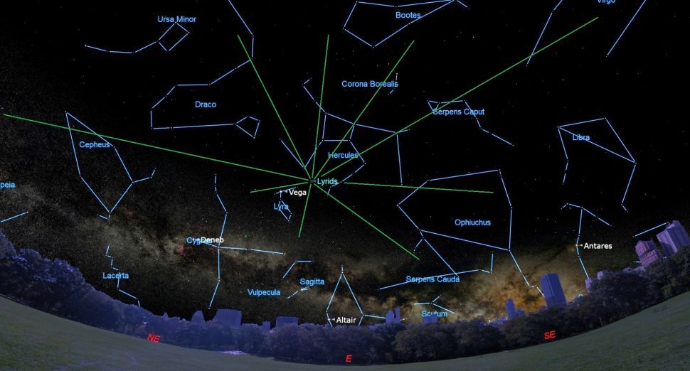 Метеоритний дощ можна побачити в Північній півкулі та зокрема його буде видно в Україні. Дивитися треба в сторону сузір'я Ліри, що знаходиться на північному сході неба, де це астроявище буде найвидовищнішим. Орієнтир - зірка Вега, яка вважається однією із найяскравіших. Втім, падаючі метеори можна знайти в будь-якій частині неба.