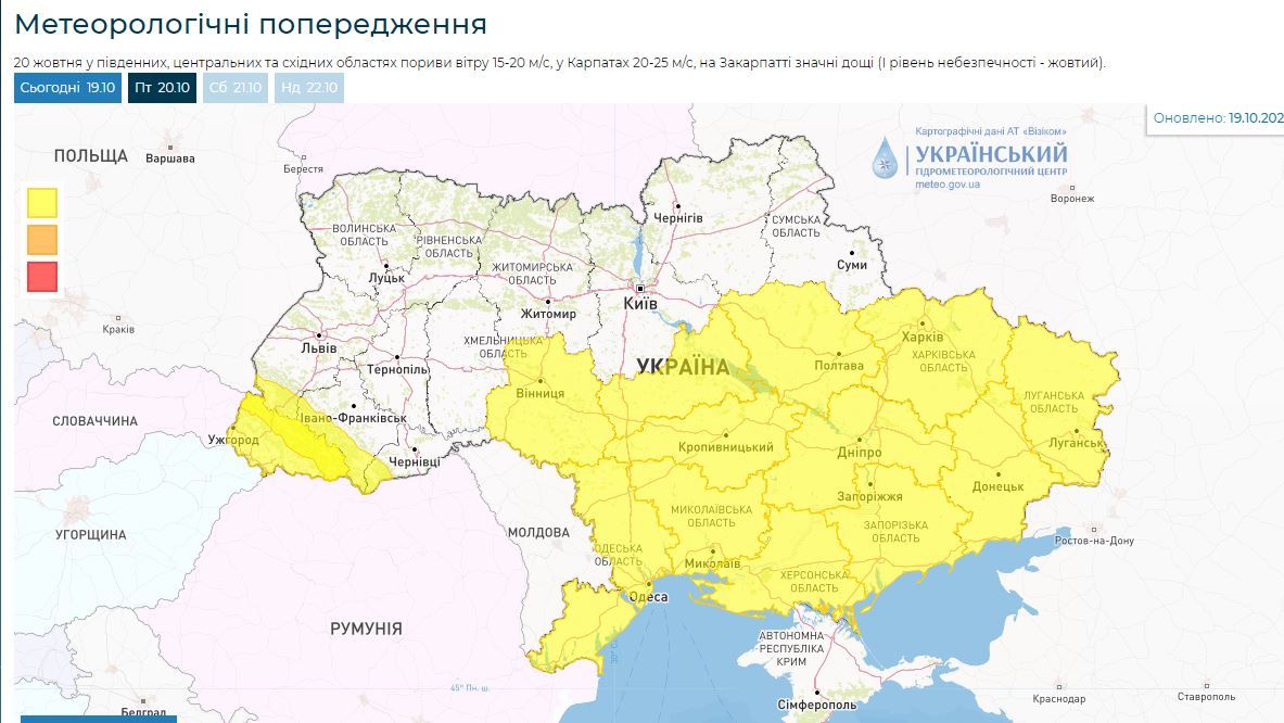 У Дніпрі та по всій Україні оголосили штормове попередження на 20 жовтня.