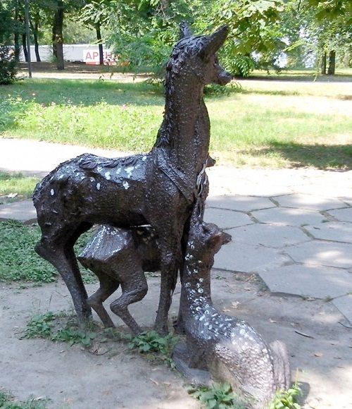Після реконструкції парку Шевченка 1974 року в одному із куточків зеленої зони з'явилося кілька скульптур оленів. Вони були зроблені зі звареного дроту і «символізували» родину батьків з двома оленятами. Побачити, що олені виготовлені з дроту можна було лише з близька. Більше було схоже на те, що звірі сплетені з гілок дерев. Композиція приваблювала дітей та була улюбленим місцем для фотосесій відвідувачів парку.