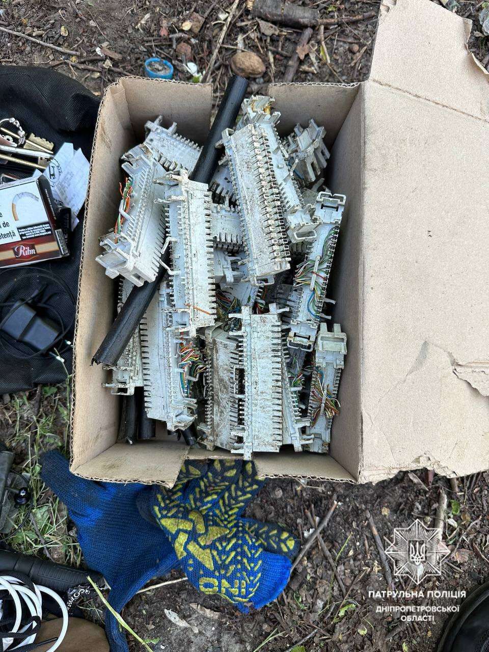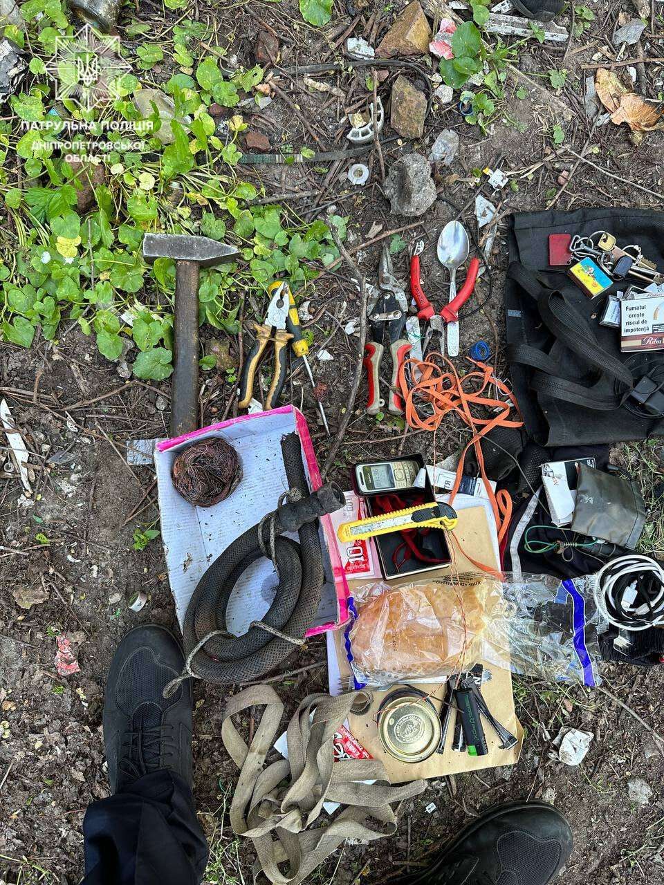 На вихідних на вулиці Бригадній чоловік випалював кабель, його помітили патрульні та підійшли, щоб перевірити. У крадія виявили випалені мідні дроти, інструменти для зрізу кабелю та телефонні плінти.