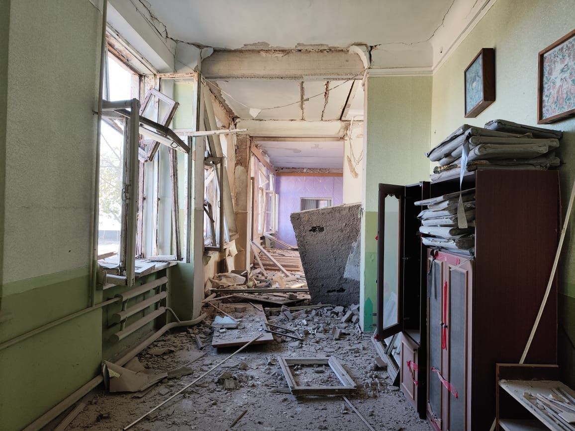 Сама гімназія зазнала серйозних руйнувань. Пошкоджені й 42 приватні будинки та 18 господарських споруд. А ще – інфраструктурний об’єкт, 17 сонячних панелей, магазин, авто.