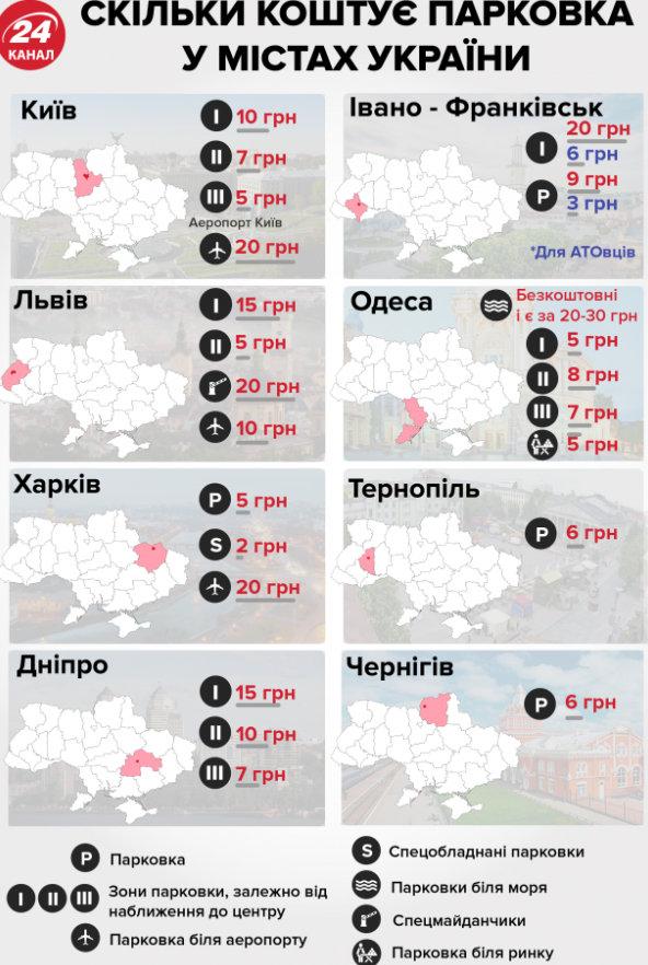 Отмечается, что в большинстве городов парковками управляют госпредприятия. В небольших – частные фирмы. Плата вычисляется по формуле, установленной Кабмином в нее входят затраты на оплату электроэнергии, закупку топлива, загруженность площадки и другие показатели.